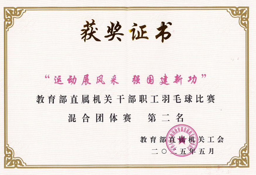 ??羽毛球作为教育部直属单位传统品牌赛事,既是职工强健体魄的舞台,更是弘扬奋斗精神的载体。队员们纷纷表示,体育竞技的拼搏意志与教育工作者的育人初心一脉相承。此次佳绩将进一步激励全体职工把赛场上的协作精神、进取意识和坚韧品格转化为推动教育高质量发展的实干动能,在服务教育强国建设的征程中再立新功!